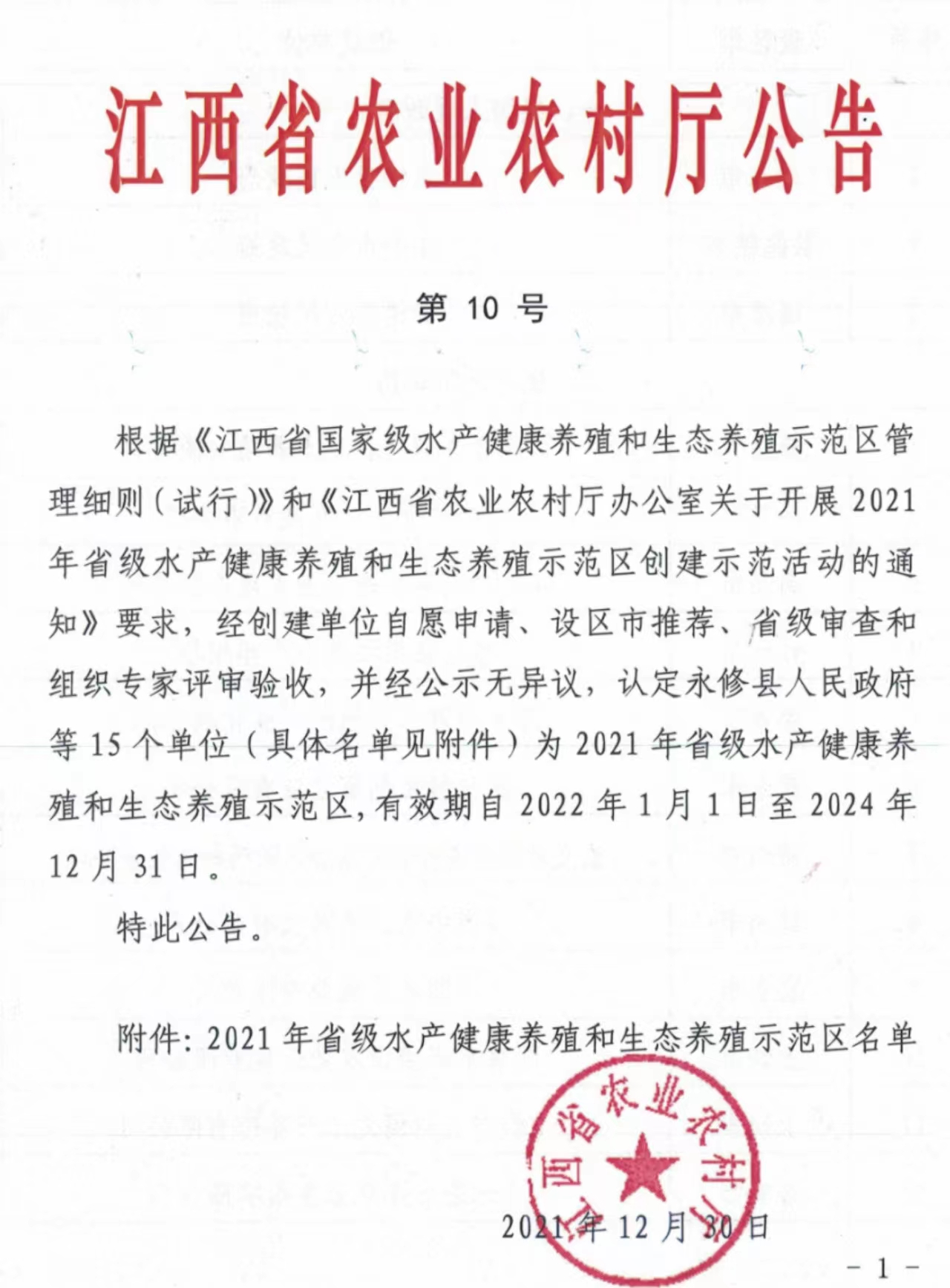 中農晨曦現代農業智能工廠--會昌基地獲江西省“省級水產健康養殖和生態養殖示范區”授牌